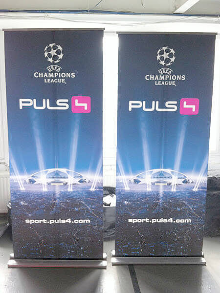 Roll up´s in verschiedenen Breiten und Höhen und zwei verschiedene Bespannungen.